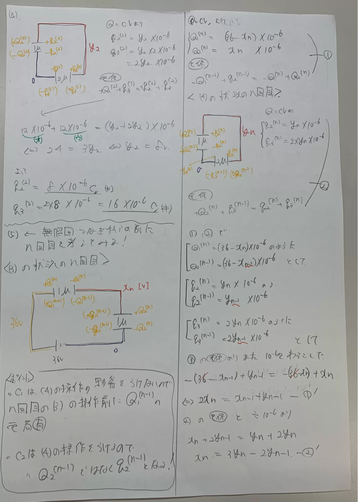 (5)3 (4) 操作を無限にくり返して行ったとき, C に蓄えられる電荷は