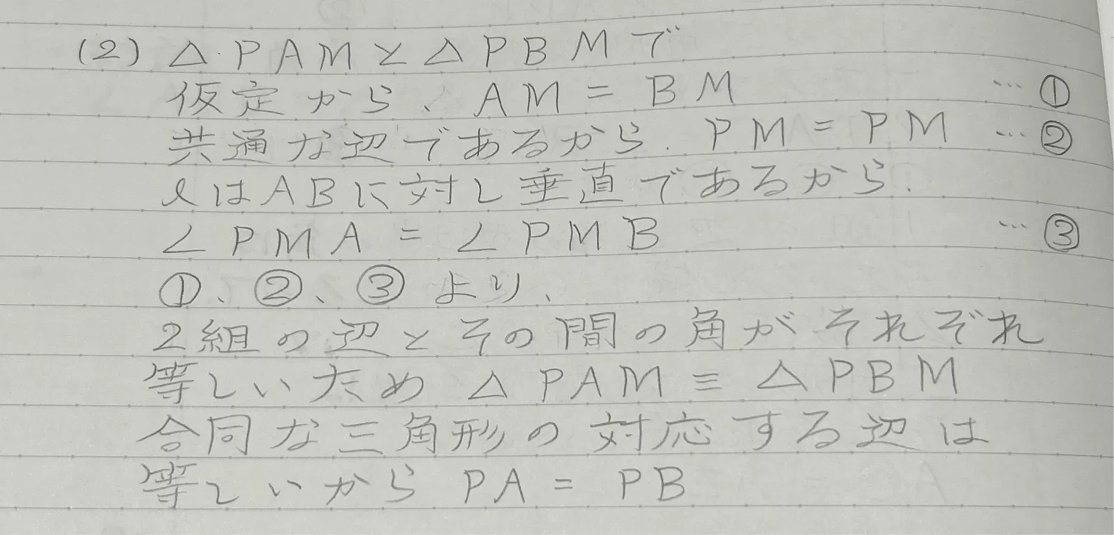共通な辺だから,PM=PM