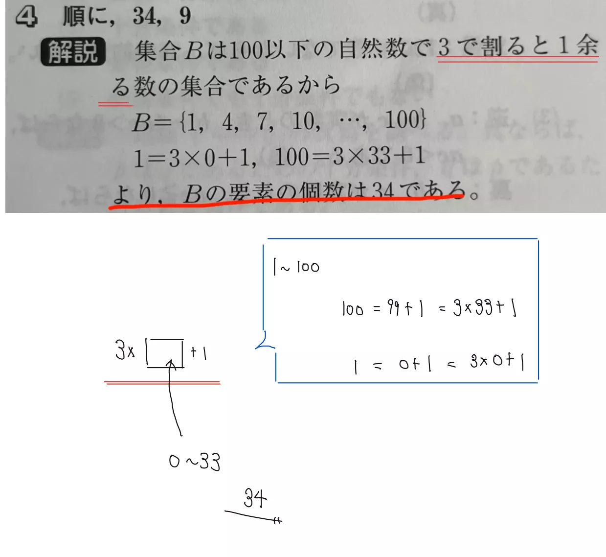 解説 集合Bは100以下の自然数で3で割ると1余